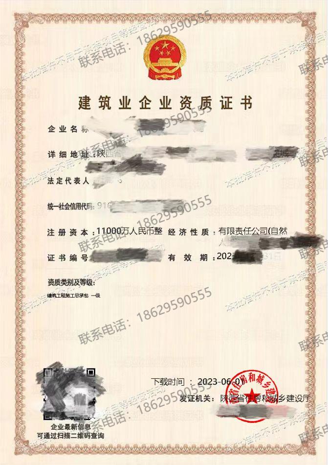 陕西省建筑工程施工总承包一级