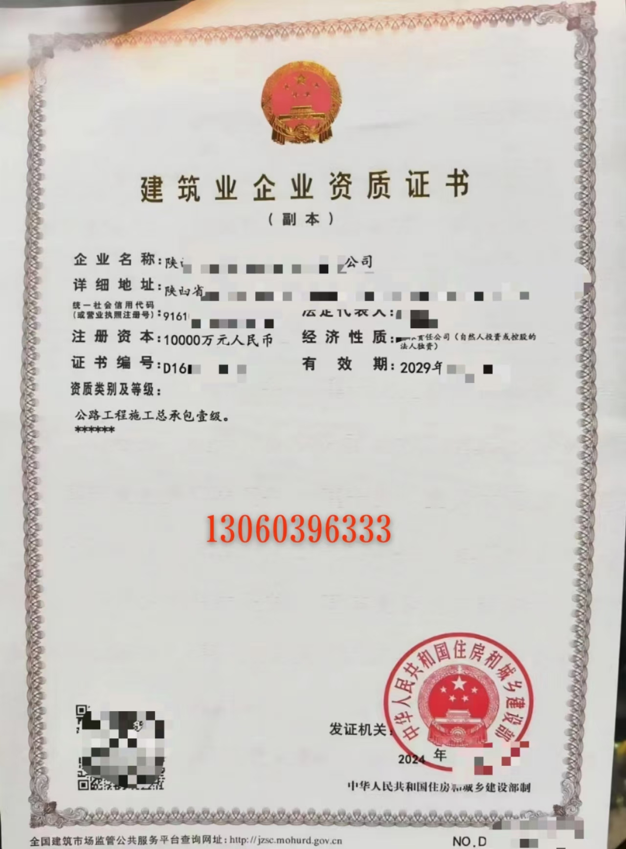 陕西公路工程施工总承包一级