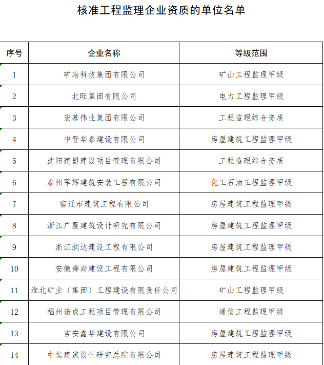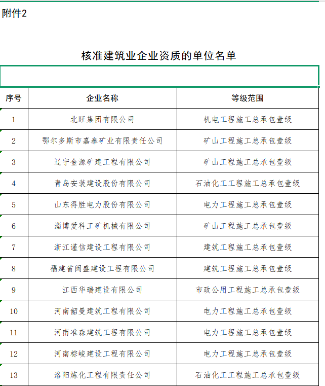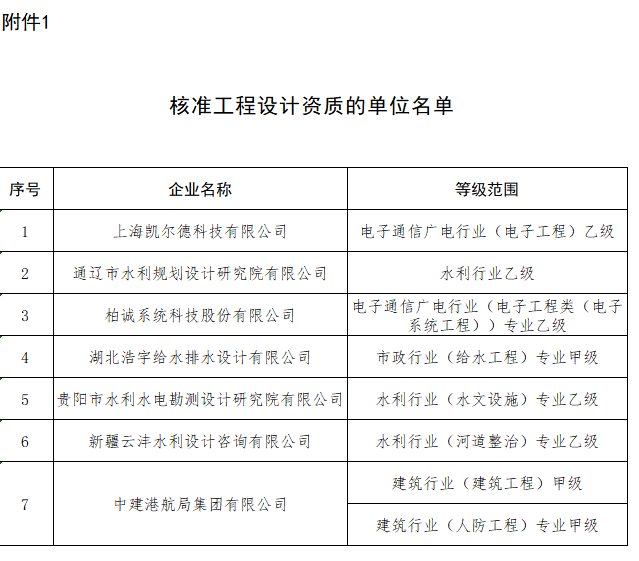 附件:1.核准工程设计资质的单位名单 2.核准建筑业企业资质的单位名单 3.核准工程监理企业资质的单位名单