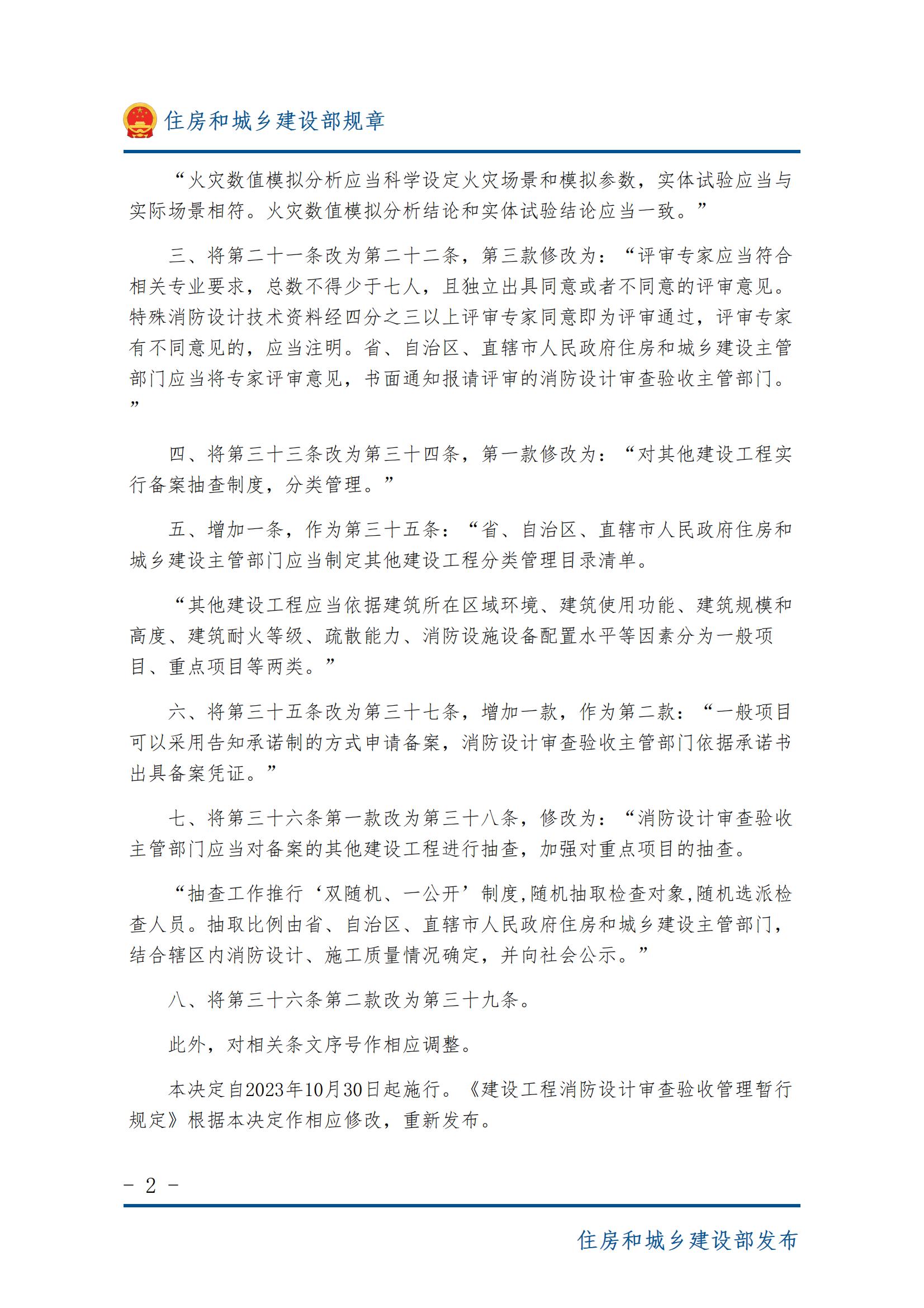 住房和城乡建设部关于修改《建设工程消防设计审查验收管理暂行规定》的决定